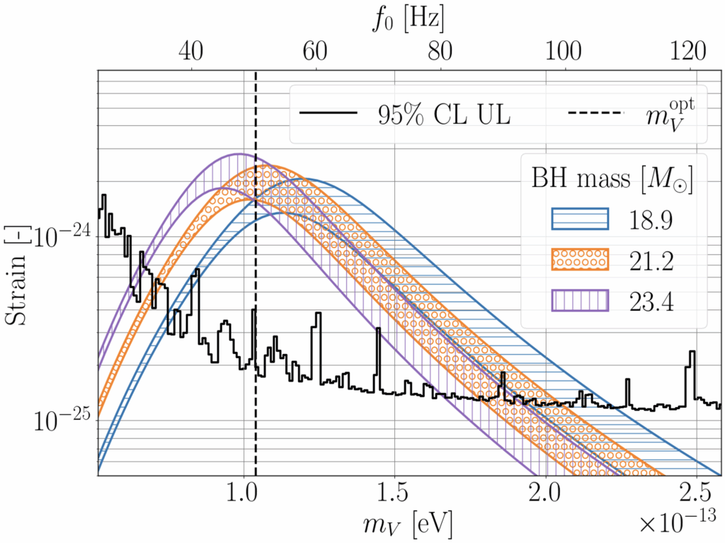 Gravitational waves (GWs) can be used to search for exotic phenomena in particle physics beyond those known from accelerator experiments on Earth, including so-called “ultralight vector bosons.” The LIGO-Virgo-KAGRA (LVK) Collaboration conducted the first directed searches for GWs from ultralight vector boson clouds around known black holes. In the absence of a detection, we were able to disfavor the existence of vector bosons with masses ~1 × 10⁻¹³ electronvolts [eV].
